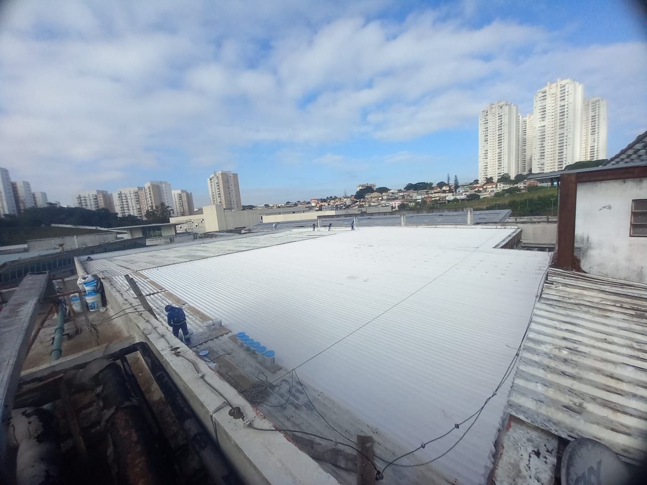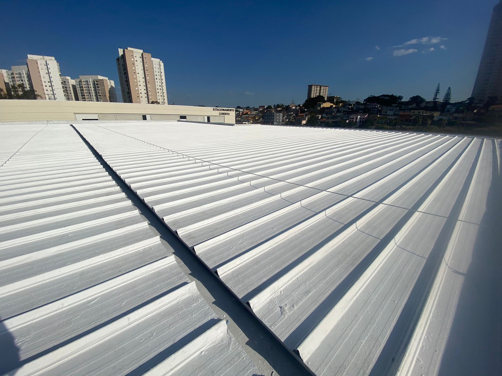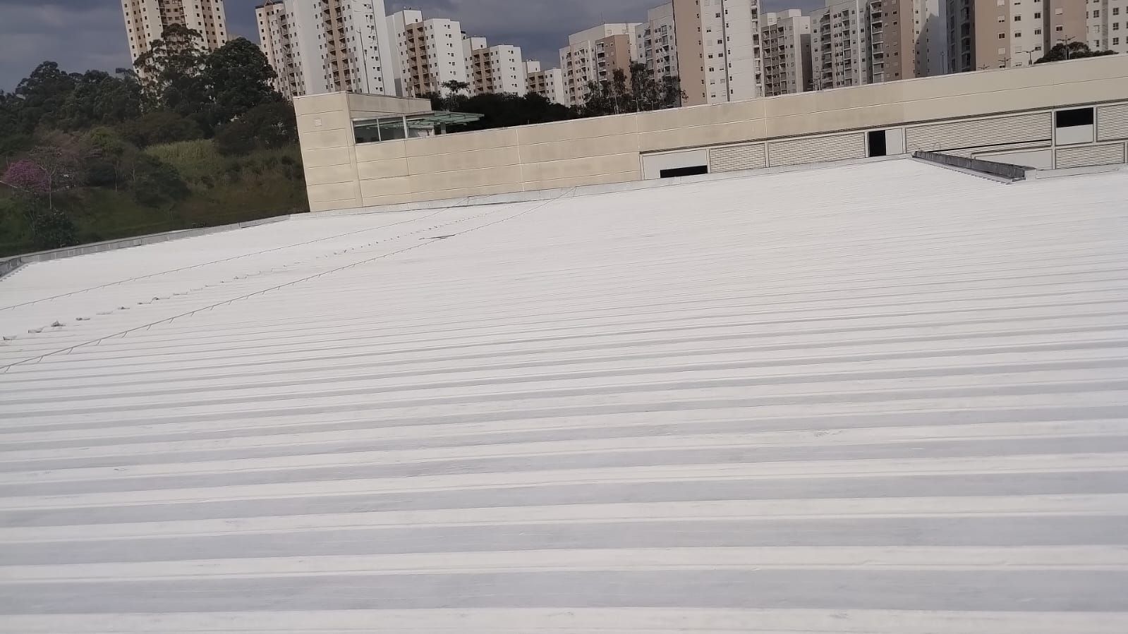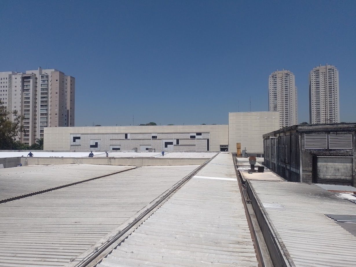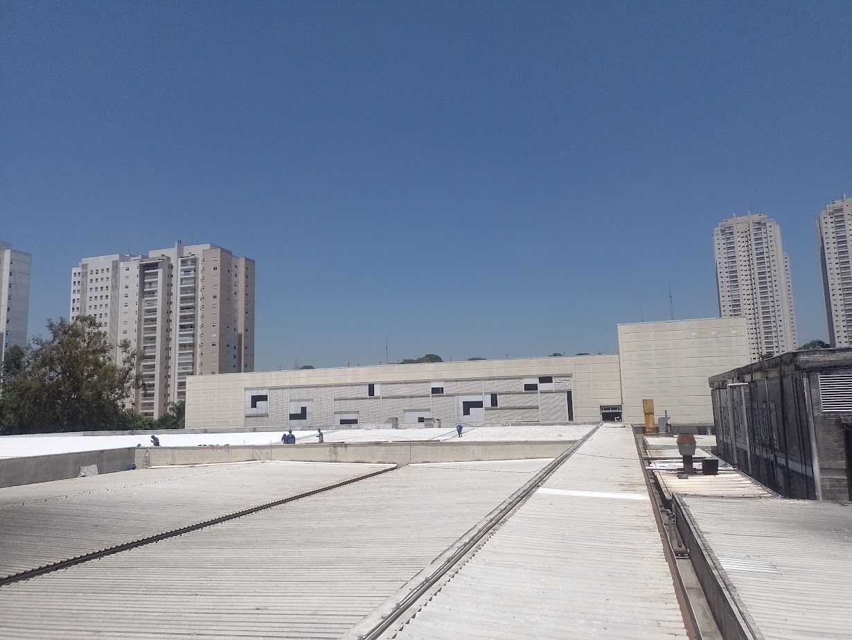 Telhado do shopping de Taboão da Serra aplicado com Manta liquida